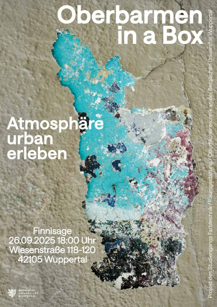 Mit Oberbarmen in a Box soll die Vielfalt, die Atmosphäre und die Besonderheiten Oberbarmens in einem von Studierenden gestalteten Raum erleb- und greifbar gemacht werden. Das Projekt findet im Rahmen des Studiengangs Farbtechnik, Raumgestaltung und Oberflächentechnik an der Bergischen Universität Wuppertal statt, und wird von Prof. Dr. AnneMarie Neser geleitet.
